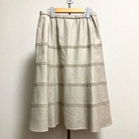 出張買取でレリアンのスカートを買取しました。サイズは13です。使用機会の多いベージュスカート。適度にレースを加えることで、地味にならずほどよい華やかさを演出していただけます。