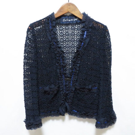 透け感のあるレース仕様のジャケットなので、インナーをみせながらも上品感のあるスタイルに。