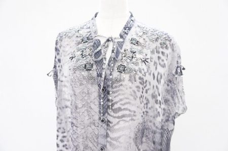 襟元やボタンのビジューが華やかで、パーティーやお出かけにもピッタリ。