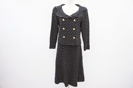 愛らしいデザインに心惹かれる斉藤都世子のセットアップを出張買取ご利用のお客様より買取しました。可愛らしさを存分に発揮してくれる女性にとっては気分の上がるアイテムです。スカートの裾もしっかりとフリルが効いており保温性にも期待しつつおしゃれを楽しんでいただけます。
