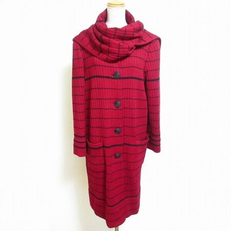 綺麗な赤が優雅な斉藤都世子のコート。出張買取ご利用のお客様より買取しました。ダークな雰囲気のコーディネートが重なる冬のアクセントとして使っていただける1枚です。ボーダーも細く上品さを出していただけるのが嬉しいですね。