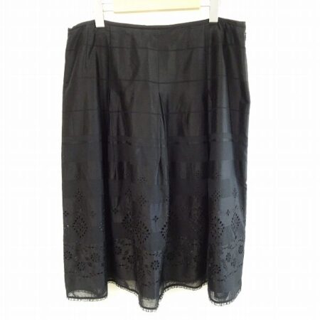 レリアンのスカートを出張買取にて買取しました。サイズは17号です。女性の可愛らしさを刺繍やカットワークで表現したスカート。黒なので使いやすく着回しも効くのがポイントです。
