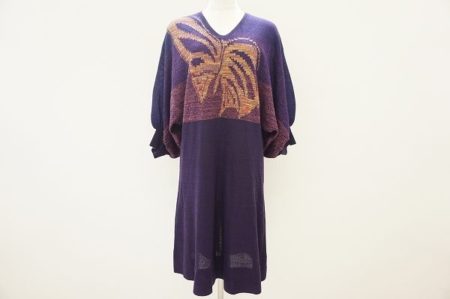 斉藤都世子ニットワンピースを出張買取で買取しました。目を引く鮮やかなパープルに蝶の柄が引き立つニットワンピースでアクセントがありながらどこか上品な印象を演出できます。お袖がフリルなので、ニットでありながらカジュアル感がなく女性らしさが際立った1枚です。