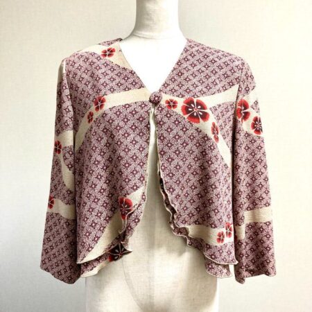 宅配買取にて詩仙堂のカーディガンを買取しました!引き込まれるような絵柄が素敵ですね。お花も上級感があり、デザインもコンパクトで引き締まって見えます。黒のワンピースなどにも抜群に合うかと思います。