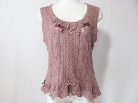 ピンクハウスPINKHOUSEのノースリーブベストを宅配買取にてお売り頂きました。丁寧な手仕事からなる透かし編み、立体的なフラワーモチーフが素敵なベストです。