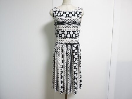 どこかインパクトのあるワンピース。出張買取ご利用のお客様より買取しました。安定感があり豪華さもあります。モノクロベースなのがシックですよね。パンプスで綺麗に決めていただくのはもちろんですが、スニーカーでカジュアルに決めていただくのもおすすめ。いろいろなコーディネートを楽しんでいただけるのではないでしょうか。