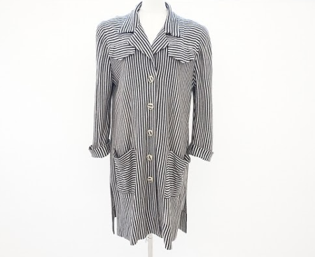 白と黒の細身ストライプ。カジュアルな印象になりやすいベーシックなデザインですが斉藤都世子のニットただのカジュアルには留まりません!ストライプを細身にすることでカジュアルの中にもきちんと感を出し、サイドにスリットを入れて抜け感を出しつつも動きやすく着心地抜群。そして縦のストライプなのでIラインがさらに強調されスタイル良く低身長な方でも着やすくオススメな1着です!