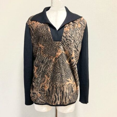 伊太利屋といえば、個性豊かな動物柄を気軽に着られるのがポイント。とげとげしさもなくオシャレに動物柄を楽しんでいただけます。こちらは出張買取ご利用のお客様より買取しましたニットです。どこにでもなじみそうな黒と茶色をベースとした柄が素敵です。