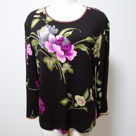 レオナールのカットソーを出張買取ご利用のお客様より買取しました。サイズは46です。知性を感じる茶色に豪華なお花がはっきりと映えた1枚。素材もシルクで高級感がありますね。ネックレスやイヤリング、ピアスがなくても存在感が出せる1枚です。