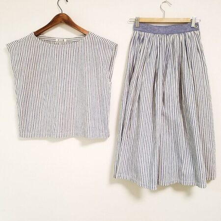 イッセイミヤケのセットアップを買取しました。サイズは9号です。腕を出しスッキリ着られるセットアップ。ストライプのさわやかさが爽やかで軽いのが嬉しいですね。