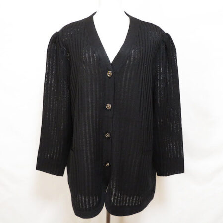 斉藤都世子のカーディガンを買取しました。出張買取ご利用のお客様より買取したアイテムです。黒のシャープ感がありつつも、どこか身軽さを感じられるデザインが素敵。どんなタイプのお洋服にも合わせられる出番の多いカーディガンともいえるでしょう。