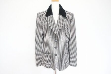 カッコよい雰囲気の中にも都会チックな印象にもしてくれるジュンアシダのジャケット。アクイールの宅配買取にて買取しました。黒の襟がポイントとなりきっちりした印象に仕上げてくれます。小ぶりの千鳥柄が何とも言えません。アンゴラやカシミヤも入っているため暖かさも期待できます。