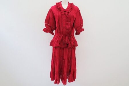 フリルやリボン、レースで可愛さ全開!ピンクハウスらしい夏物セットアップを買取しました。ピンクハウスの特徴が感じられファンには嬉しいセットアップです。赤色の色味が顔映り等を華やかにコーデを豪華にしてくれます。スカートは長めの丈なので大人でも着易くしっとりとした雰囲気です。ラフさと大人の両立が出来る嬉しいアイテム。