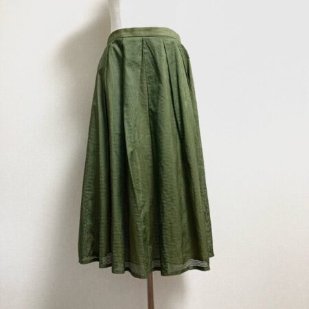 シビラのスカートを出張買取ご利用のお客様より買取しました。程よく長めの丈が素敵な1点。カーキのスマートさとプリーツのスイートさのバランスがなんともいえません。ハイヒールでもブーツでも丁度いい具合に決めてくれます。
