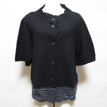 出張買取ご利用のお客様よりジウセンソユニコのカットソーを買取しました。存在感があるボーダーを裾の方に少量加えることでバランスよく決められるのがポイント。暑さが目立ってきつつも半袖だとまだまだ寒いような春から夏にかけても着られる五分袖です。