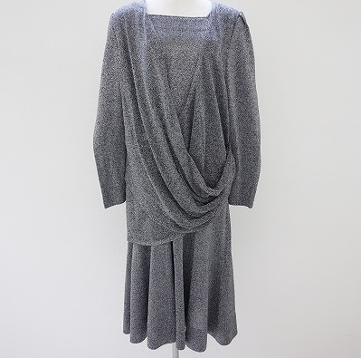 落ち着いた色味の中に華やかさがあるので顔周りを明るくさせ上品さを感じさせるワンピース。ニットなのにカジュアルになり過ぎる事無い佇まいが素敵な1着です。ニットワンピースは生地が薄いとチープに見えてしまい長く愛用出来ないことも多いかと思いますが流石斉藤都世子のニットにはそんなものは感じる事無く長く愛用出来るのが嬉しいですね。綺麗なドレープが生まれ柔らかく上品な大人の女性な雰囲気を感じさせます。