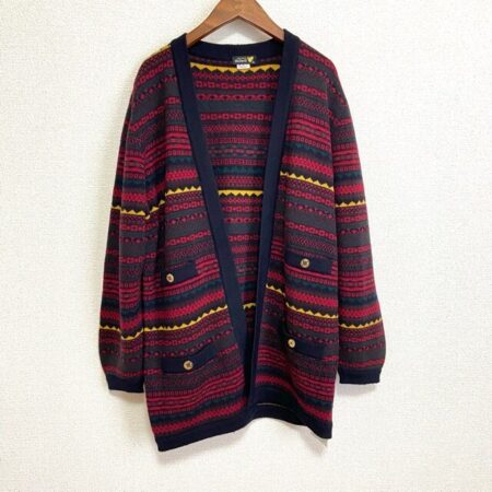 明るさもありモードな感じも楽しめる雰囲気が最高なカーディガン。マックデイビッドというブランドのお洋服です。ネイティブ柄ではありますが、どこか落ち着きもあり余裕ある感じも作り出してくれます。