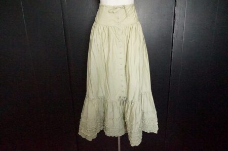 40後半〜60代の女性に人気を博すピンクハウス。当店でも買取強化中の人気ブランド・ピンクハウス PINKHOUSE、その人気ブランドのロングスカートを査定させてもらう事が出来ました。ロング×ティアード×ピコフリルがの大人可愛いデザイン、淡いグリーンで甘過ぎず合わせやすいカラーなのが嬉しいですね。ワンピースやロングジレと重ね着をするのが今のトレンドでしょうか。。