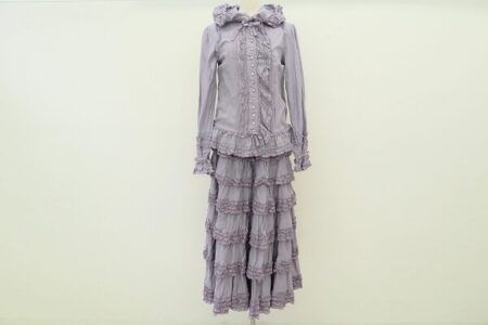 フリルやリボンを贅沢に使い可愛いお洋服が揃うと言えばピンクハウスです!当店ご利用のお客様よりピンクハウスのセットアップを買取しました。今回ご紹介のアイテムもフリルやリボンがふんだんに使われていて心躍る1枚。薄紫という可愛くも落ち着いた色味が大人の魅力を盛り上げますね。ハード・ハンサム系のアイテムと合わせれば甘辛MIXも。