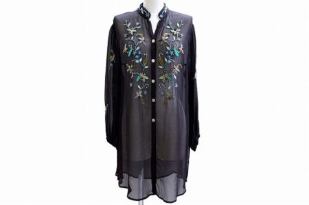 伊太利屋のシャツブラウスを宅配買取にて買取しました。シルク素材がポイントのシャツブラウスをお譲りいただいております。ブラック×ビジューの組み合わがどこかラグジュアリーな印象にしてくれる1枚です。小物やジュエリーに頼ることなく、1枚でしっかり決まります。