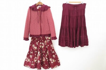 ピンクハウスのセットアップを出張買取ご利用のお客様より買取しました。どこか色っぽく品のある雰囲気に仕上げてくれるボルドー。可愛らしいお花も程よい華やかさを出してくれます。