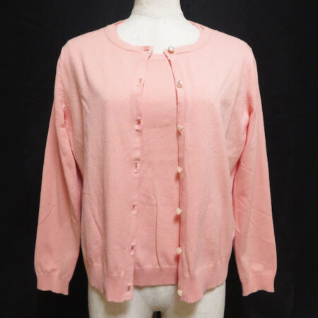 レリアンのアンサンブルをお客様より買取。柔らかなピンクに心奪われ春を感じさせる素敵なアイテムですのでご紹介させて頂きます。色も柔らかく上品なのですが、パールボタンを使っていて更に女性らしい雰囲気が嬉しいですね。アンサンブルは様々な場面で使っていただけるので是非お手に取ってみて下さい。