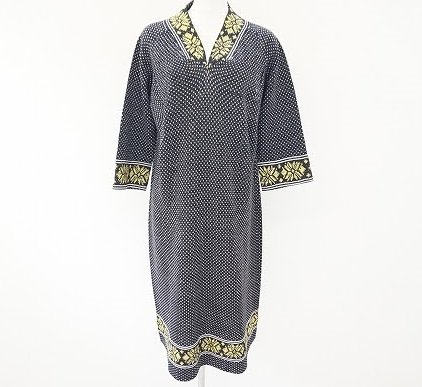 大人の女性でも着やすいカラーに丁度良い光沢のラメをあしらったワンピース。優しい色使いとラメをあしらいVネックでデコルテラインを見せる事でスッキリとスタイル良く上品な雰囲気を感じさせます。首、袖、裾にあしらわれ柄が統一感がありニット特有のカジュアルな雰囲気を抑えおしゃれ上級者の風格を演出してくれています!幼くなりなり過ぎない様に加減されたデザインなのでオトナ女性が長く愛用出来る素敵な1枚です!