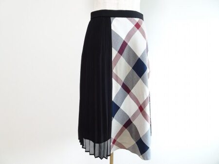 ブルーレーベルクレストブリッジのスカートを出張買取ご利用のお客様より買取しました。半分チェック、半分無地のバランスが絶妙でおしゃれなスカートです。くどくなく上品におしゃれをしていただけます。秋から冬にかけて楽しんでいただけるスカートですね。