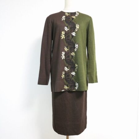 斉藤都世子のセットアップを出張買取ご利用のお客様より買取しました。いい具合にMIXしたカーキとブラウンが落ち着いた女性に仕上げてくれるセットアップです。シンプルなお花も嬉しいポイント。