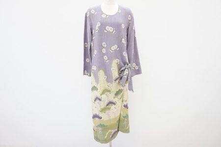 桜や松などの和の要素がたっぷりと詰まった着物ワンピースを買い取り査定させていただきました。