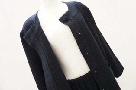 リブ素材で縦長効果もありますから、スッキリした印象も。