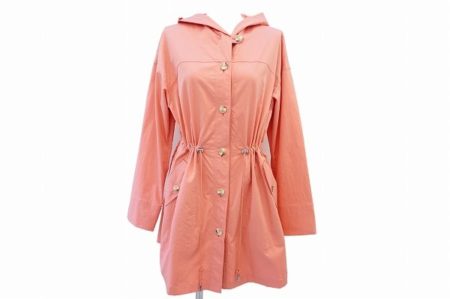 レリアンのコート・サイズ11号を出張買取にて買取しました。春の訪れを感じるような華やかなサーモンピンクのコートです。たおやかな印象にしてくれます。前をしっかりと留めればワンピース風にもなり、一つコーディネートが完成します。ウエストの絞りも綺麗に見せてくれるポイントです。