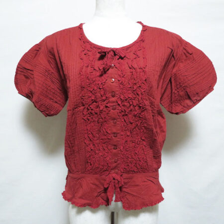 ピンクハウスならではのキュートな夏物衣料。細かく幾重にも付けられたフリルが素敵なブラウス。フリルやリボンだけでも可愛いのにパフスリーブで女性ならではのディテールなのも嬉しいですよね!夏場は暑さで薄着になるので赤などの華やかな色味も重宝しそう。