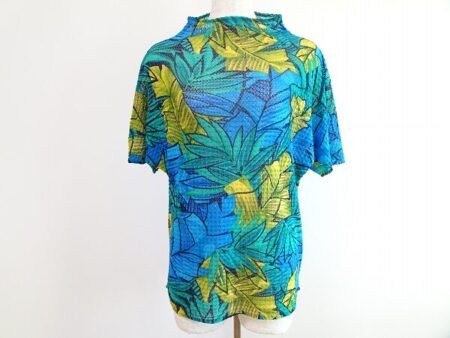 伊太利屋の青緑色カットソーを出張買取させて頂きました。イタリアの伝統を取り入れつつ、日本人女性に合うように考えられた人気のブランドならではのデザイン性の高さです。メッシュ素材で出来ていて透け感があるのでインナーとの組み合わせを楽しめる1着。鮮やかな色味とラインストーンで華やかにしてくれます。ボトムスはデニムでも大人カジュアルな装いになります。
