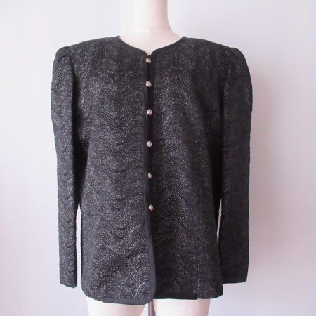 宅配買取ご利用のお客様よりレリアンのジャケットを買取しました。黒とラメの美しくもあり、カッコよくもある最高の組み合わせです。ボタンも小ぶりで目立ちすぎないのがありがたいポイント!