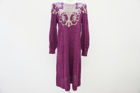 サイトウトヨコの長袖ワンピースを宅配買取にてお譲り頂きました。上品な雰囲気の高貴な色、パープルベースに大きな花柄が素敵なデザインは1枚で着ても充分素敵な装いにしてくれます!首回りはスッキリしているのでデコルテをあまり出すようなデザインは苦手な方にもお勧めです。手持ちのベルトでウエストマークすると腰の位置も高く見えトップの柄に視線が集まり低身長な方にも着こなしやすいですね。