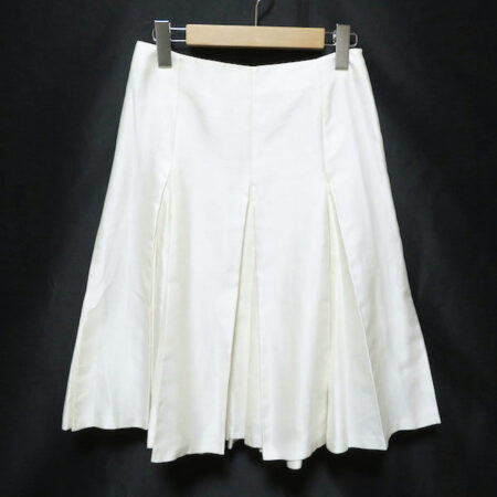 出張買取にてマックスマーラのスカートを買取しました。シルクが入ったプリーツスカートです。シンプルなロゴTシャツ、かっちりしたオフィス系、ニット、ふんわりシャツなど。様々なアイテムとのコラボレーションが想像できるオールマイティなお洋服です。