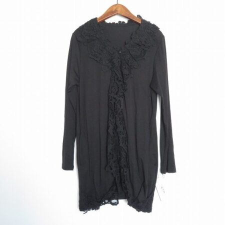 出張買取でシズカコムロのチュニックを買取しました。サイズは40です。タグが付いた美品のお品をお買取しております。黒でシンプルさもあるもののレースの豪華さもしっかり感じる1点です。