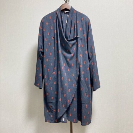 ペイズリー柄が特徴的なコート。ブランドは三年坂です。出張買取にて買取しました。グレーの色味も暗すぎずにしっとり落ち着かせてくれます。シンプルなボトムスとも合わせていただきたいです。