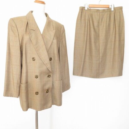 レリアンのスカートスーツを買取しました。出張買取経由でお譲りいただいたお品です。濃いめのベージュできちんとした風合いを出していただけます。チェック柄というのもよく見ないとわかりません。そこがおしゃれですよね。