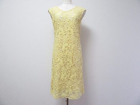 ミセス層からシニア層までおしゃれを楽しみたい女性に支持されているユキトリイ。今回ご紹介するのは出張買取にてお買取した上品なイエローが素敵なワンピースです。かぎ編みデザインが落ち着きを出してくれます。ゴールドやベージュのボレロを合わせるのもおすすめ。