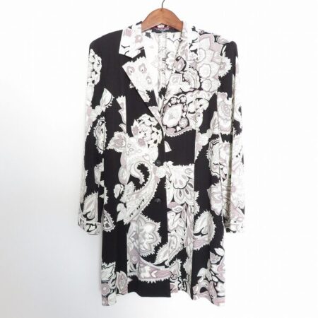レオナールのお洋服を買取しました。ジャケットでサイズはLLです。黒、白、薄ピンクがいい具合に混じりあって深みをくれます。お花柄ではありますが、決して甘くはなく程よい華やかさを保てるお洋服です。