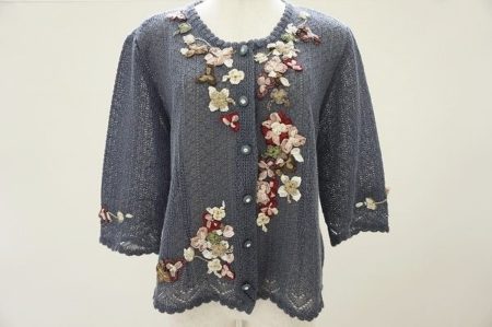 今回、宅配買い取りにてご依頼いただいたカーディガンは、アトリエサガンが得意とするフラワーモチーフ付きの豪華なディティールが自慢です。