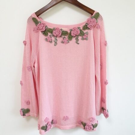 出張買取にてアトリエマリコのニットを買取しました。さわやかで品のあるお花が心をルンルンにさせてくれます。ピンクも可愛いと美しいの狭間で心が弾みそうです。