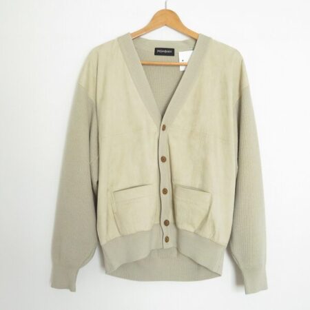 出張買取でイヴサンローランのカーディガンを買取しました。サイズはLです。余裕あるデザインで質素な雰囲気。日常に馴染むおしゃれなカーディガンです。服装を選ばず毎日でも着てい長けそうです。