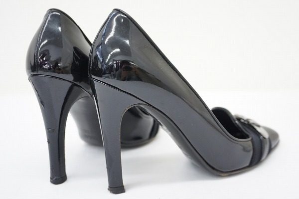 こちらのシューズは、ブラックを基調としたシンプルなデザインが魅力的なお品物です。フロント部分に施されているシルバーのベルトが全体の印象を引き締めています。