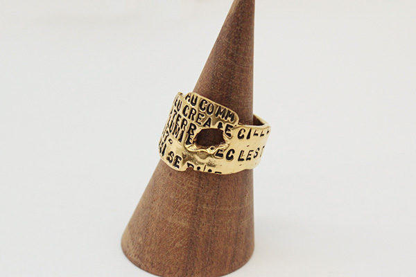 フランスらしいシックなテイストとセクシーで個性的なデザインが絶大な支持を集めるフランスのアクセサリーブランド、セルジュトラヴァルよりゴールドカラーが素敵なメッセージリングをご紹介いたします。