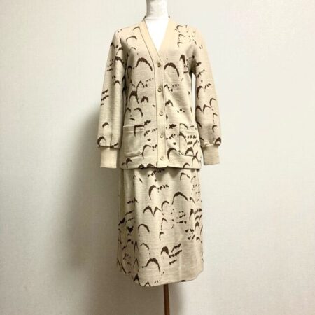 出張買取でハナエモリのセットアップを買取しました。ベージュの柔らかさ、どこか安心して着られるサイズ感が嬉しい1点。気を張り過ぎずおしゃれにこだわることができます。