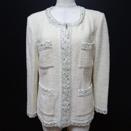 セントジョンのジャケットを出張買取ご利用のお客様より買取しました。フェミニンな雰囲気漂うジャケット。ノーカラーで品よく決めていただけます。その中にもポケットが多いなどカジュアルさもありいろいろなところで使いやすいのが嬉しい特徴かもしれません。