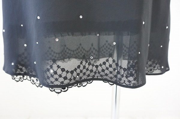 黒を基調としたシンプルなノースリーブタイプのワンピースですが、スパンコールとレースがあしらわれていることによって、一気にエレガントな雰囲気に仕上がっています。パーティーシーンや結婚式、お食事会やデートなど、幅広くお使いいただけるかと思います。